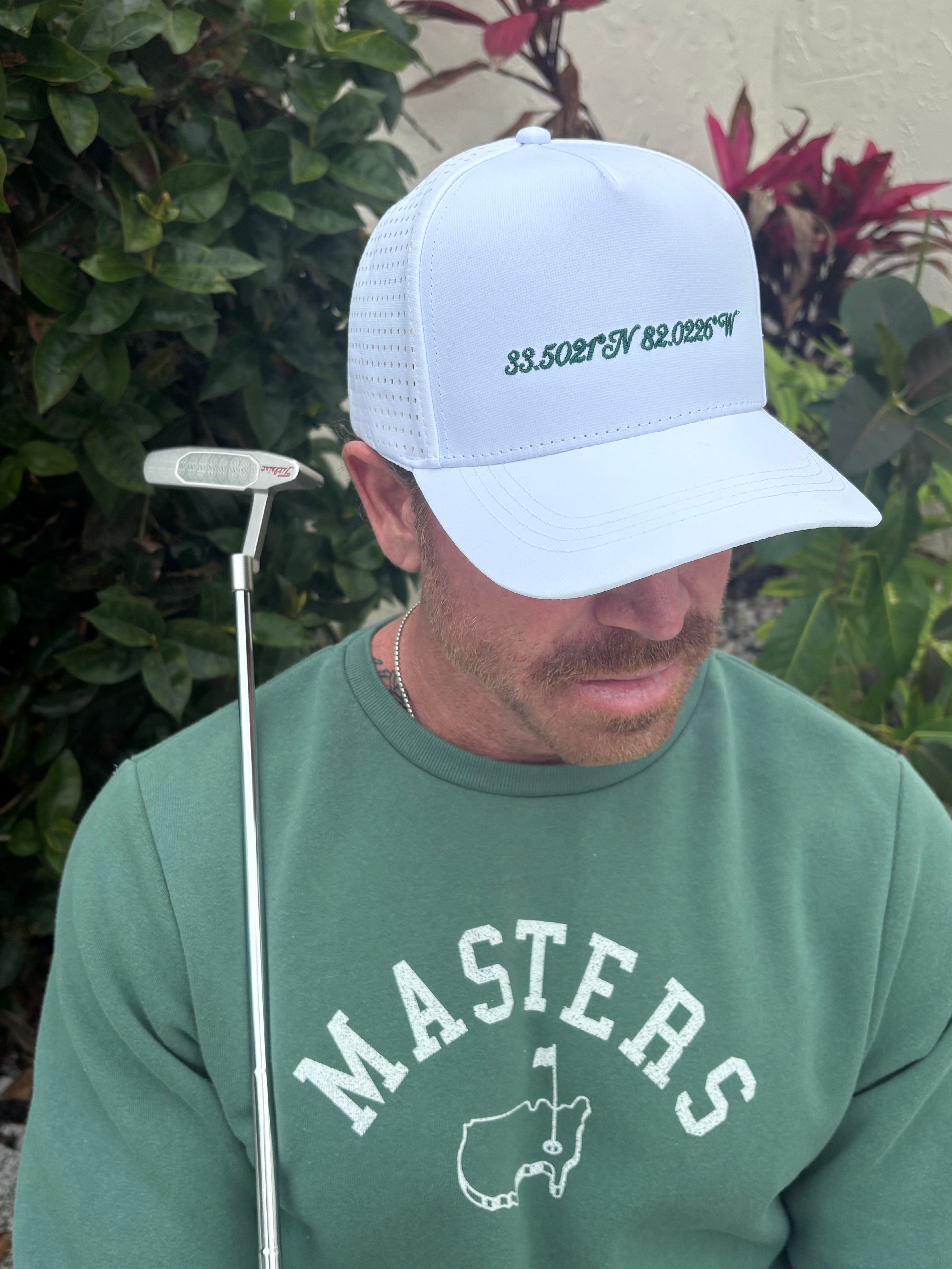 - Features the coordinates of Augusta National embroidered on front